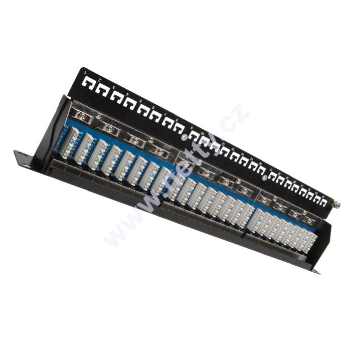 Stíněné patch panely Solarix – CAT5E jsou osazeny moduly s duální IDC svorkovnicí 110/Krone. Svorkovnice je z důvodu snadného zakončení kabelu označena podle standardu T568A i T568B, a to za pomoci barev párů a číselného označení jednotlivých vodičů přímo na desce plošných spojů (liché číslo označuje vždy polobarevný vodič a sudé plně barevný). Součástí těla panelu je vyvazovací lišta, která slouží k přehlednému uspořádání a pevnému uchycení datového kabelu a rovněž uzemňovací vodič, který spolehlivě propojí stínění kabeláže se zemněním v rozvaděči. Stíněné patch panely Solarix – CAT5E splňují a rovněž převyšují požadavky na komponenty kategorie 5E definované ve standardech TIA/EIA 568, EN 50173 a ISO 11801. Panely jsou pevné, spolehlivé a poskytují dlouhou životnost. Standardní barva patch panelu je černá. Velikost v datovém rozvaděči je 1U.