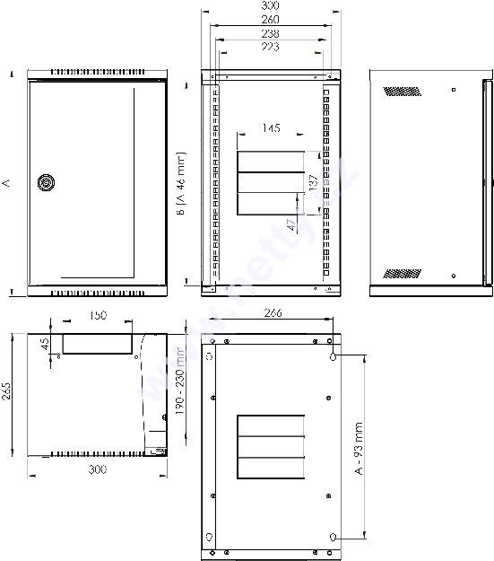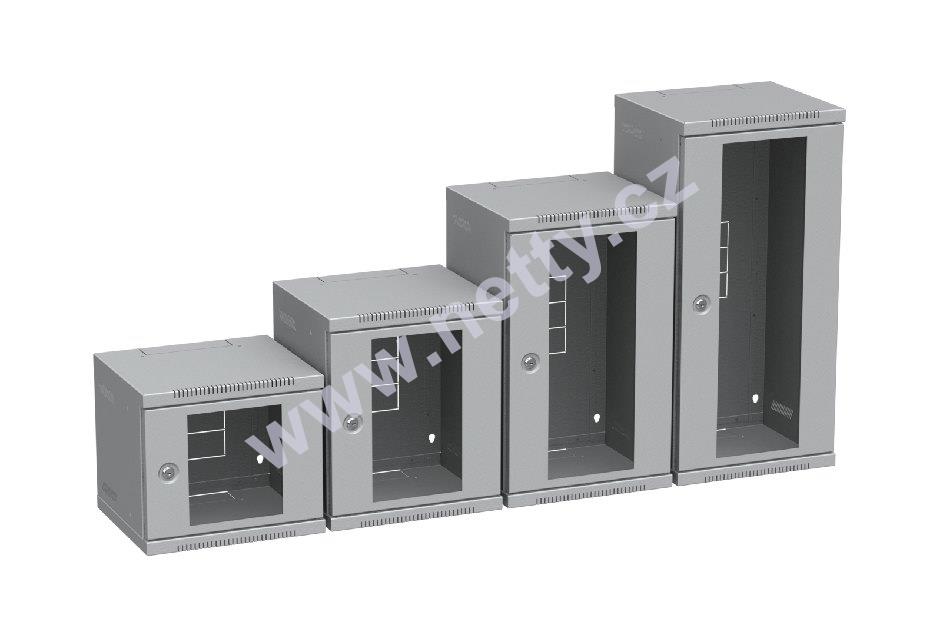 10" nástěnné rozvaděče jsou určeny pro instalaci prvků strukturované kabeláže malého rozsahu. Do standardní výbavy tohoto typu rozvaděče patří přední 10“ vertikální lišty, skleněné dveře se zámkem, perforovaný skelet pro lepší odvětrávání a kabelové prostupy ve spodní, horní i zadní části. Rozvaděč je symetrický a jednoduchým otočením lze dosáhnout pravého, nebo levého otevírání dveří. Barevné provedení rozvaděče je šedá RAL 7035.