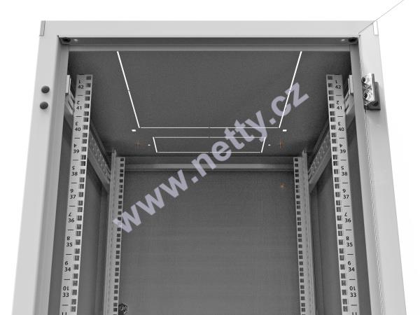 Rozvaděč obsahuje dva páry 19" vertikálních lišt s potiskem pro identifikaci výšky umístění montovaných zařízení. Konstrukce rozvaděče umožňuje měnit polohu vertikálních lišt ve směru hloubky rozvaděče.