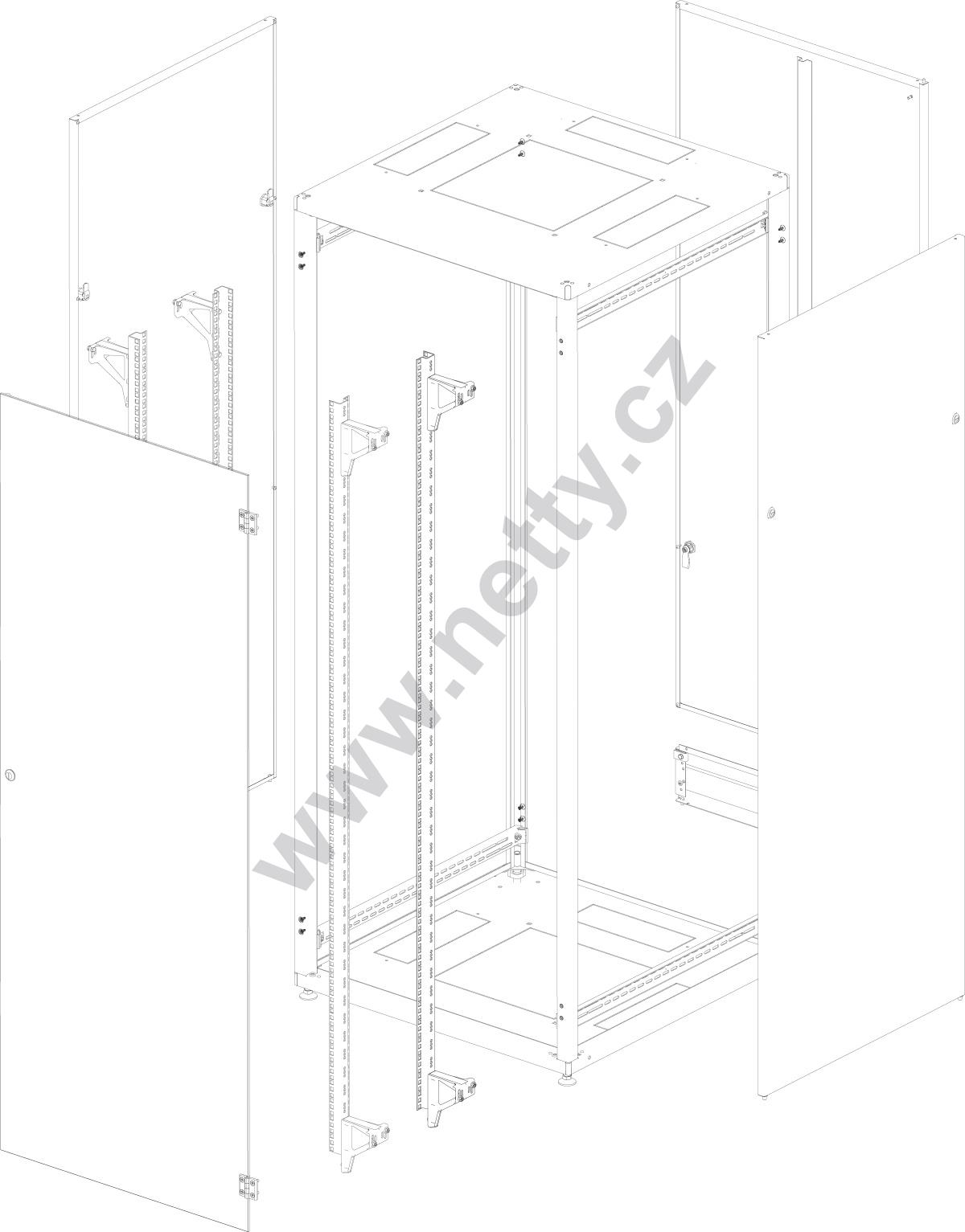 Rozvaděč obsahuje dva páry 19" vertikálních lišt s potiskem pro identifikaci výšky umístění montovaných zařízení. Konstrukce rozvaděče umožňuje měnit polohu vertikálních lišt ve směru hloubky rozvaděče.