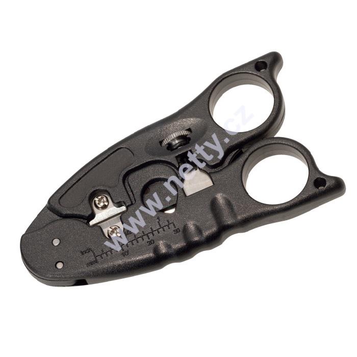 - jednoduše nastavitelný ořezávač na instalační kabely do průměru 12.7 mm s funkcí odstříhnutí kabelu a s nerezovými břity