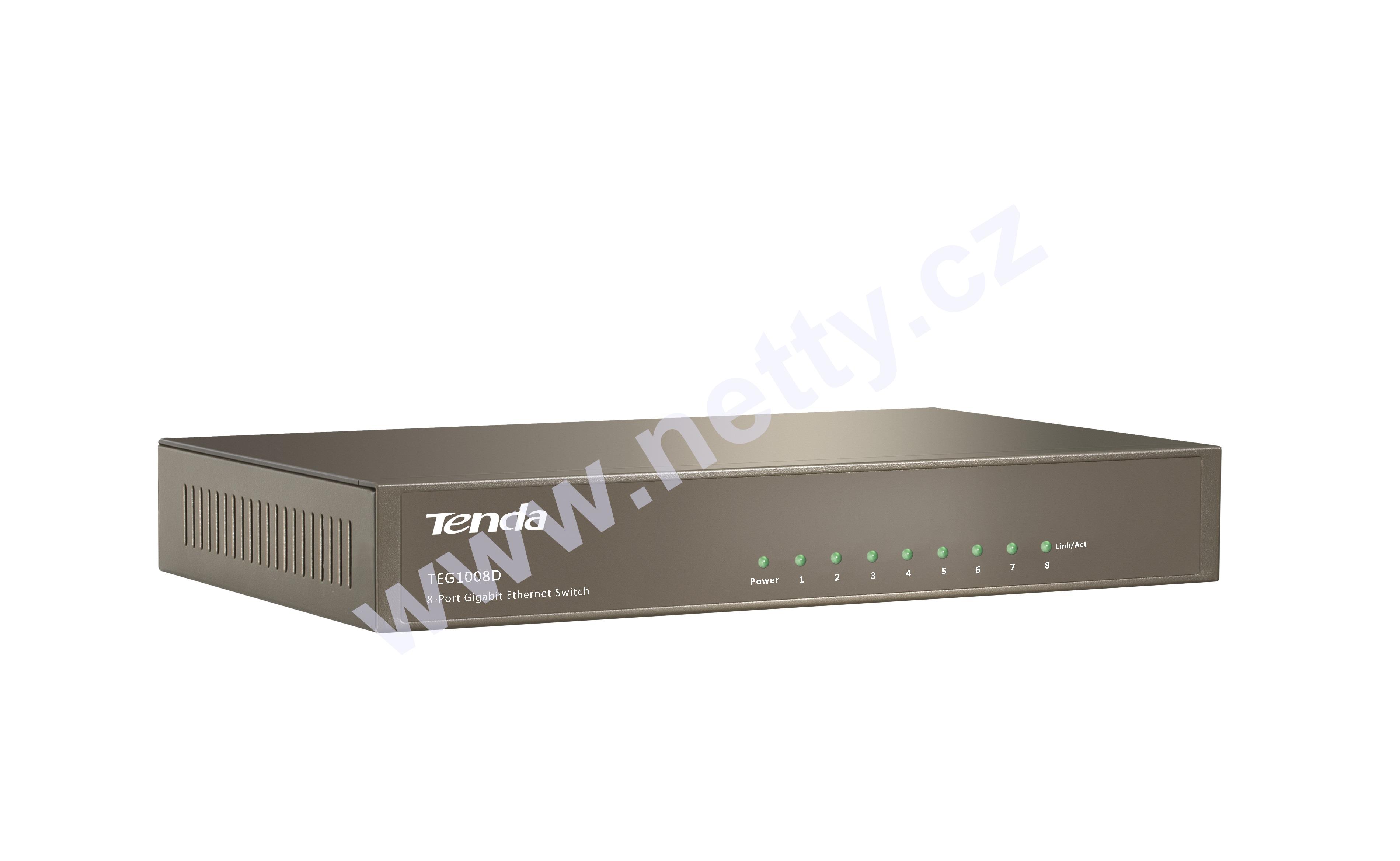 Gigabitový 8mi portový switch TEG1008D výrobce Tenda Technology, plně podporuje standardy IEEE 802.3, 802.3u, 802.3x, 802.3ab a je určený pro použití ve firmách i domácnostech.