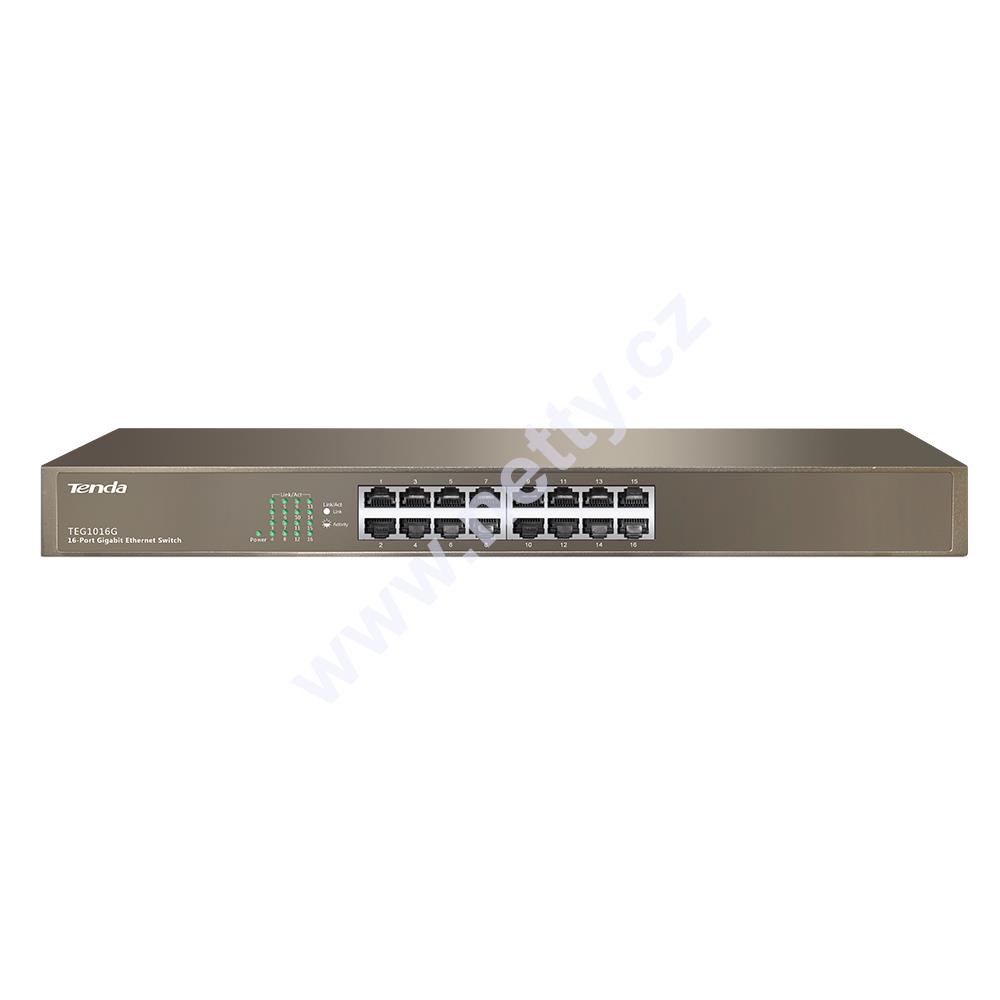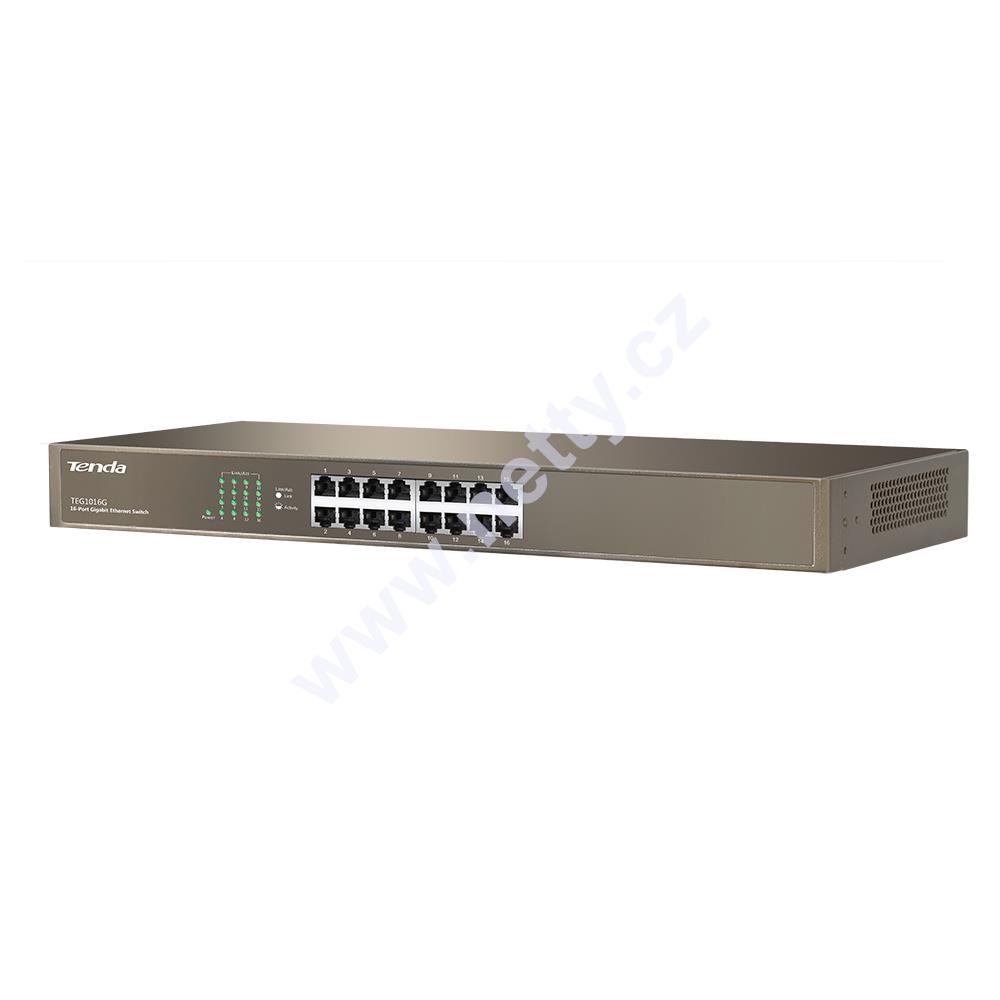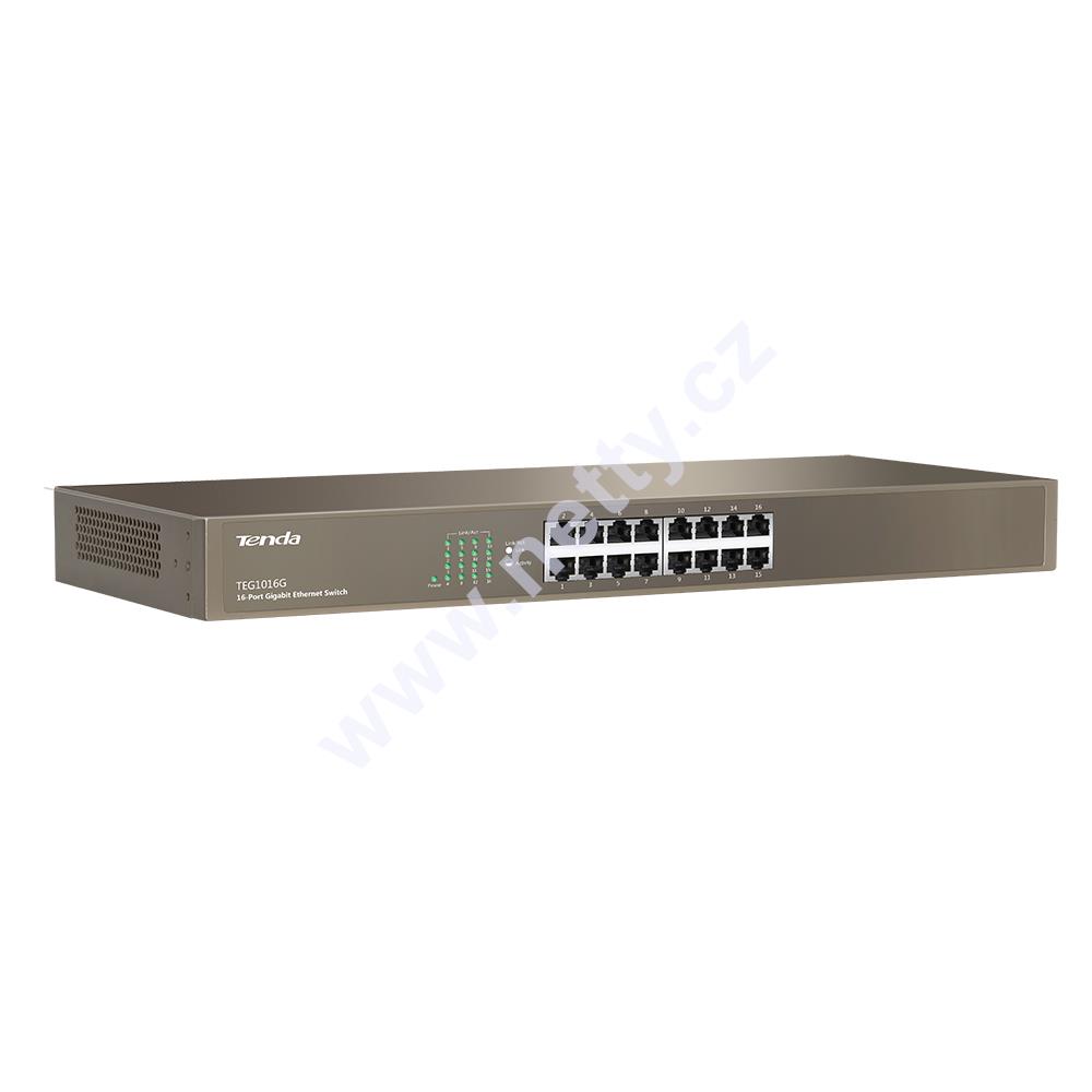 Gigabitový 16ti portový switch TEG1016G výrobce Tenda Technology, plně podporuje standardy IEEE 802.3, 802.3u, 802.3x, 802.3ab a je určený pro použití ve firmách i domácnostech.