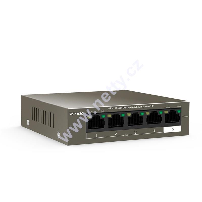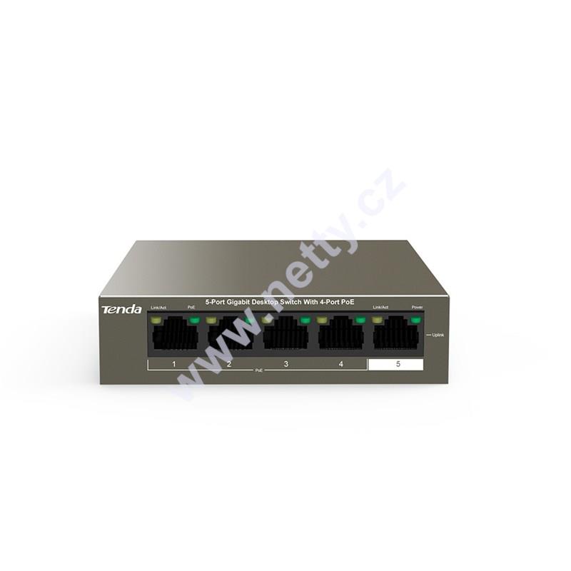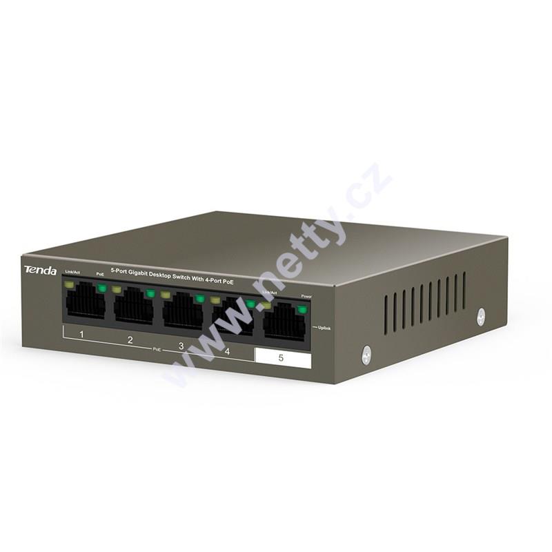 Tenda TEG1005P-4-63W přepíná data pomocí 5ti portů RJ45 s přenosovou rychlostí 10/100/1000 Mb/s s automatickou detekcí rychlosti. Jeden port slouží pro Uplink a 4 PoE porty podporují PoE 802.3af a 802.3at. Switch podporuje stabilní 8 jádrové PoE napájení, ochrana proti přepětí 6kV. Podpora přepojování uzlů v módu Store-and-Forward. Full-duplex kontrola toku 802.3x, half-duplex kontrola toku v režimu Back-Pressure.