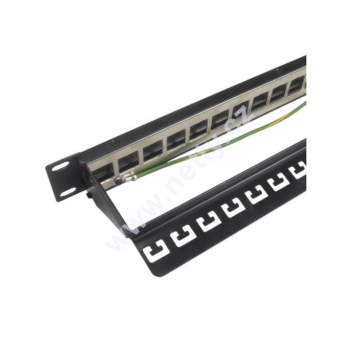 Tento neosazený patch panel s označením SX24M-0-STP-BK-UNI je univerzální modulární patch panel, který je určen pro 24 keystonů strukturované kabeláže Solarix. Panel je kompatibilní s keystony z produktových řad Solarix - kategorie 5E, Solarix - kategorie 6 i Solarix kategorie 6A, které mají svorkovnici otočenou dozadu (tj. témeř všechny keystony Solarix kromě SXKJ-5E-UTP-BK-90 a SXKJ-5E-UTP-BK-D). Modulární provedení patch panelu umožňuje pohodlnou instalaci keystonů a díky vyvazovací liště, která je součástí dodávky panelu, i přehledné vyvázání a pevné uchycení datového kabelu přímo k tělu panelu. V případě instalace stíněné kabeláže je tento patch panel vybaven zemnícím drátem, který umožňuje spolehlivé propojení stínění nainstalovaných komponentů se zemněním rozvaděče. Barva tohoto univerzálního patch panelu Solarix je černá, velikost v datovém rozvaděči je 1U. V případě potřeby je možné zaslepit volné porty záslepkou SXKJ-0-BK.
